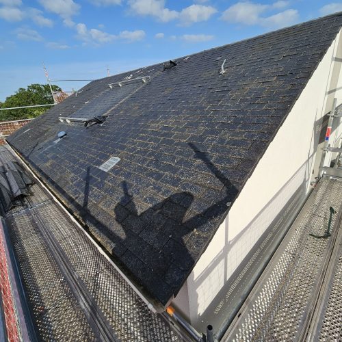 Démoussage de toiture à Limoges : nettoyage professionnel, traitement antimousse et hydrofuge, amélioration de l’étanchéité et de la durabilité, toiture plus propre et protégée durablement.